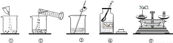 解答:解:(1)溶液配制的操作步骤:计算、称量、溶解、装瓶,故图示的正确排序是:④⑤①②③;