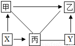 精英家教网 由C、H、O、Fe四种元素组成的初中常见物质间有如图所示的关系,其中甲、乙、丙是单质,X、Y是化合物.图中“-”表示相连的物质两两之间可以发生反应,“→”表示由某一物质可制得另一物质.