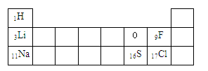 已知,氧元素的原子结构示意图如右图。请将该元素符号![]()
