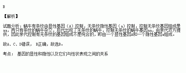 将两只有条纹的蜗牛交配,后代出现了无条纹的蜗牛。若用A字母表示,则亲代蜗牛的基因组成分别是