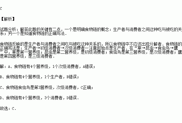 C.食虫鸟是第3营养级、次级消费者