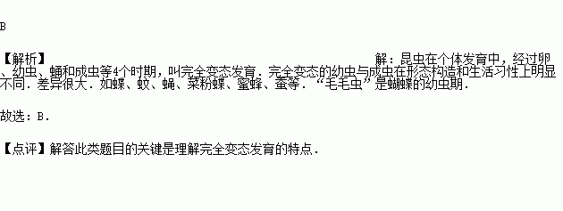 (2016春•南昌期末)美丽的蝴蝶是由“毛毛虫”变成的,在昆虫的生殖和发育过程中,“毛毛虫”属于哪个发育时期呢?( )