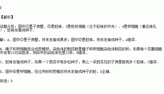 C.一个西瓜中有多粒种子,而一朵西瓜花的子房里却只有一个胚珠