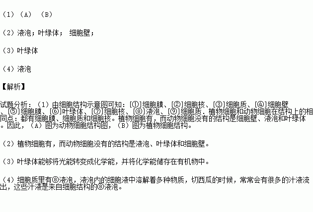 (4)切西瓜的时候,常常会有很多的汁液流出,这些汁液是来自细胞结构的_________.