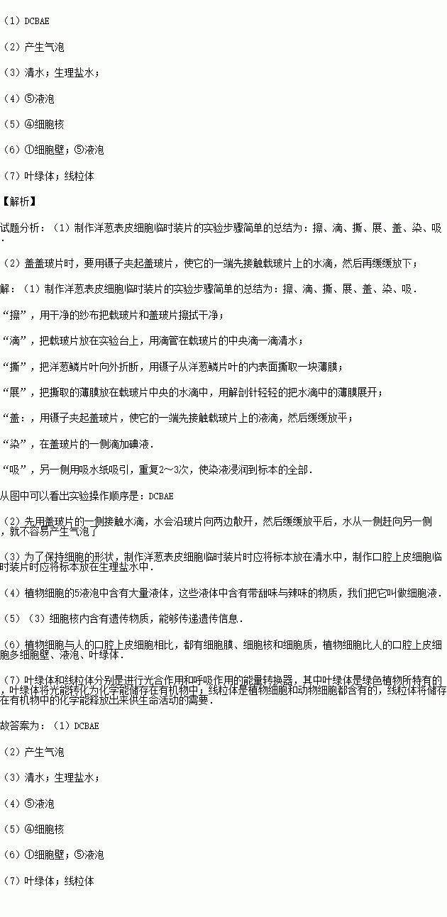 (1)用图中字母表示制作洋葱鳞片叶内表皮细胞临时装片的正确实验操作顺序: