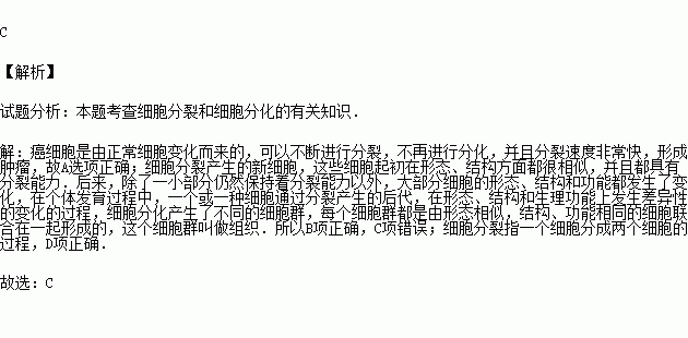 下列关于细胞分裂和细胞分化的描述中,不正确的是( )
