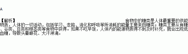 小强上课时突然大汗淋漓、头晕眼花(如图),可能的原因是 ()
