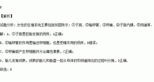 下列对“女性生殖系统部分结构示意图”的分析,不正确的是( )
