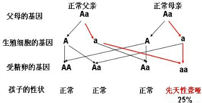 先天性聋哑患者的一对致病基因中,一个是父方传给的,另一个是母方传给的,即先天性聋哑患者都携带有一对致病基因aa,王明和张红是一对表兄妹,听、说能力均正常,他们结婚后生了一个先天性聋哑的孩子,说明他们都携带一个隐性致病基因,即其基因组成都是Aa,其子女就有四分之一的可能是先天性聋哑患者,如果夫妇双方都是致病基因携带者,其子女就有四分之一的可能是先天性聋哑患者。