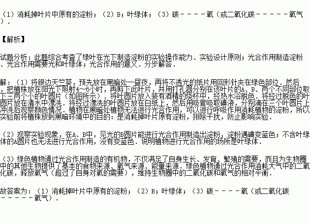(1)将银边天竺葵放在黑暗处一昼夜的目的是 .