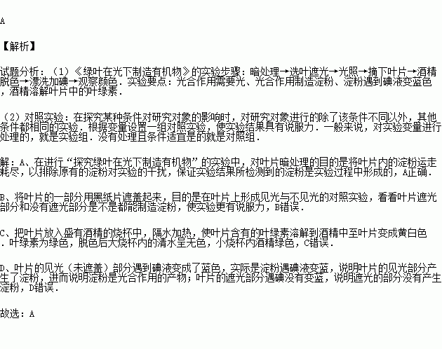 A.暗处理的目的是消耗掉叶片中积累的淀粉等有机物
