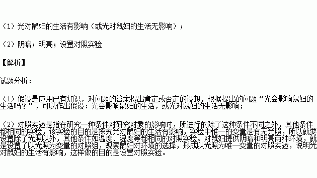 某生物兴趣小组的同学,在探究“光对鼠妇生活的影响”实验时,提出的问题是:光会影响鼠妇的生活吗?