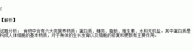儿童、青少年以及伤病员要多吃一些奶、蛋、鱼、肉,是因为人的生长发育和受损细胞的恢复和更新,都离不开( )
