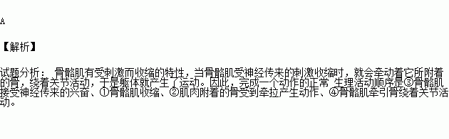 人体完成一个动作不仅依靠运动系统,还需要神经系统的调节。完成一个动作的正常生理活动顺序是( )