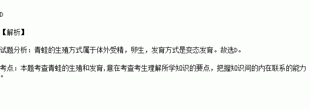 C.体内受精、胎生、变态发育 D.体外受精、卵生、变态发育