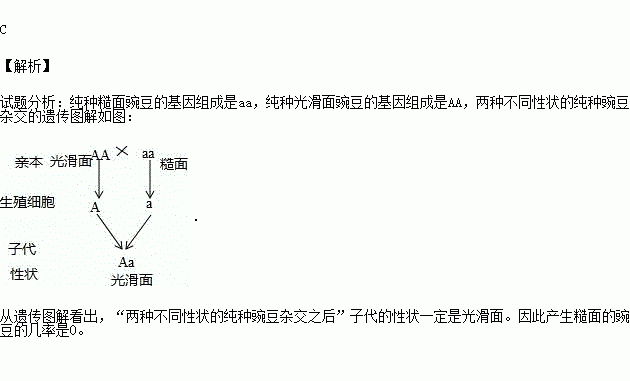 豌豆表面的糙面与光滑面是一对相对性状.决定糙面的基因(a)是隐性基因,决定光滑面的基因(A)是显性基因.两种不同性状的纯种豌豆杂交之后,产生糙面的豌豆的几率是( )