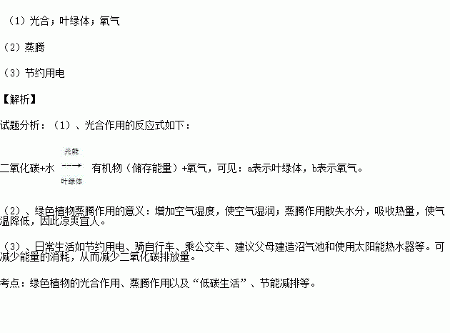 (2)“绿墙”与玻璃墙相比可降温5度,使空气湿润,是因为绿色植物能进行___ _作用