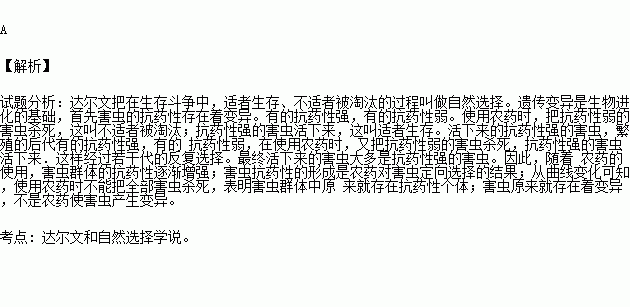 D.从曲线变化可知,害虫群体中原来就存在抗药性个体