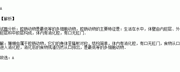 我国美丽富饶的南海诸岛,有许多是由珊瑚虫分泌物堆积而构成的珊瑚礁形成的.珊瑚虫属于腔肠动物,其显著特征是( )