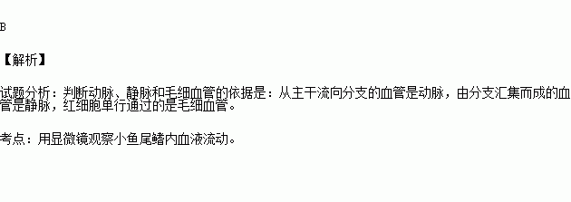 在显微镜下观察小鱼尾鳍内的毛细血管时,应寻找