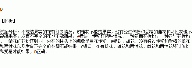 D.花既有雌花,又有雄花,只有雌花经传粉、受精才能结实