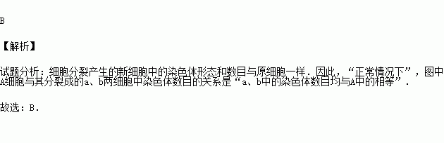 (2015秋•太原期末)正常情况下,图中A细胞与其分裂成的a、b两细胞中染色体数目的关系是( )