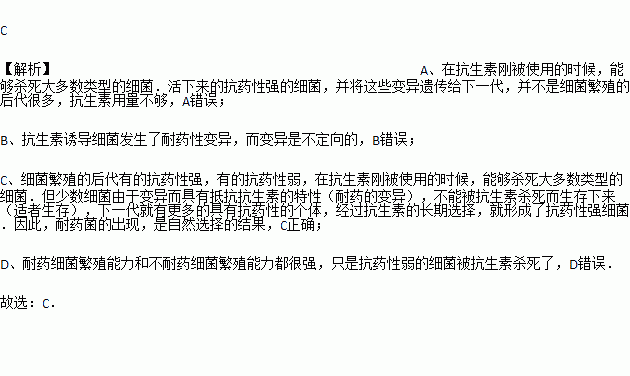 近年来,抗生素的滥用致使很多致病细菌具有一定的耐药性。根据达尔文的进化论分析,耐药细菌越来越多的主要原因是( )