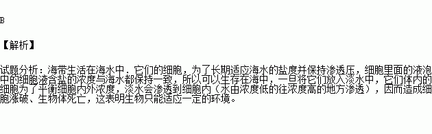 海带能在海水中生活,却无法生活在淡水中,这说明( )