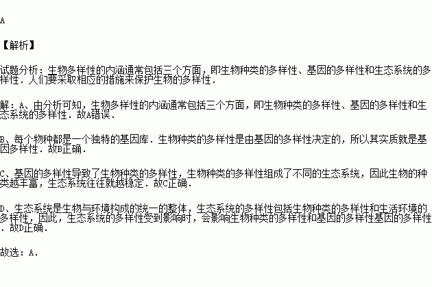 D.生态系统的多样性受到影响时,会影响生物种类的多样性和基因的多样性