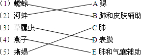 分析:蟾蜍的呼吸器官是肺,皮肤辅助呼吸;燕子和蜥蜴的呼吸器官是肺;河蚌的呼吸器官是鳃;草履虫靠表膜呼吸,据此解答.