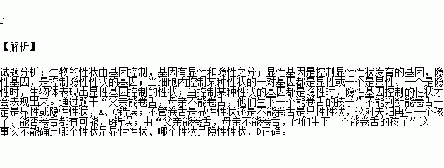 能卷舌与不卷舌是人的一对相对性状,父亲能卷舌,母亲不能卷舌,他们生下一个能卷舌的孩子.据此判断下列哪种说法正确( )