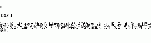下图是小娟制作洋葱表皮细胞临时装片的部分步骤,正确的操作顺序是