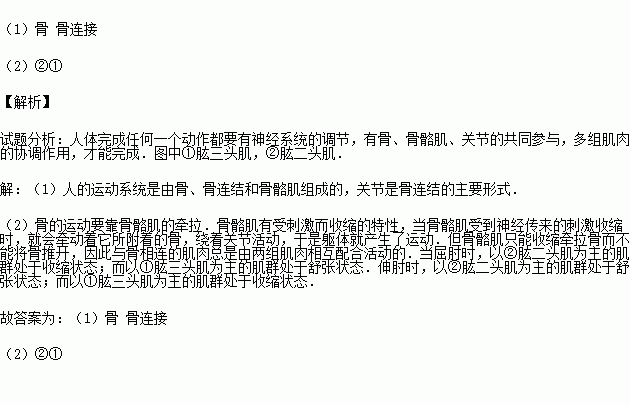 (2)人做曲肘动作时,[ ]处于收缩状态,[ ]处于舒张状态.