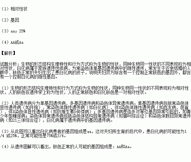 (3)据图可看出白化病患者的基因组成是________,患白化病的概率是___________。