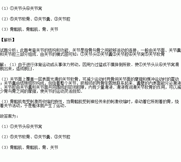 (1)脱臼是许多人都曾有过的经历,脱臼是指[ ] 从[ ] 中脱落出来的现象.