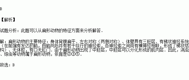 涡虫、绦虫等动物属于扁形动物,依据是( )