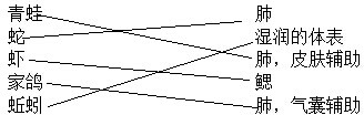 将下列各种动物的呼吸器官分别用线连接起来.