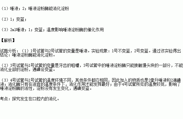 (3)Ñо¿ÐÔѧϰС×éµÄͬѧÔÚÉÏÊöʵÑé·½°¸µÄ»ù´¡ÉÏ£¬Ïë½øÒ»²½Ì½¾¿¡°ÆäËûÒòËØ¶ÔÍÙÒºµí·ÛøÏû»¯×÷ÓõÄÓ°Ï족£¬²¹¼ÓÁË4ºÅÊԹܡ£ÇëÄã¸ù¾ÝËùѧµÄÓйØÖªÊ¶Åжϣ¬¼ÓÈë4ºÅÊԹܵÄÎïÖÊ»¹Ó¦¸ÃÓÐ____________£¬¶ÔÕÕʵÑéÊÇ_______ºÅÊԹܣ¬4ºÅÊԹܵÄʵÑéÏÖÏóÊÇ___________________________£¬ÊµÑé½áÂÛÊÇ_________________________ ______¡£