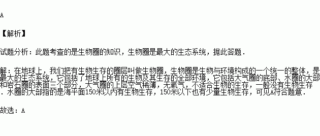 地球上生活着植物、动物等多种多样的生物,在下列地球各圈层中,一般没有生物存在的圈层是( )