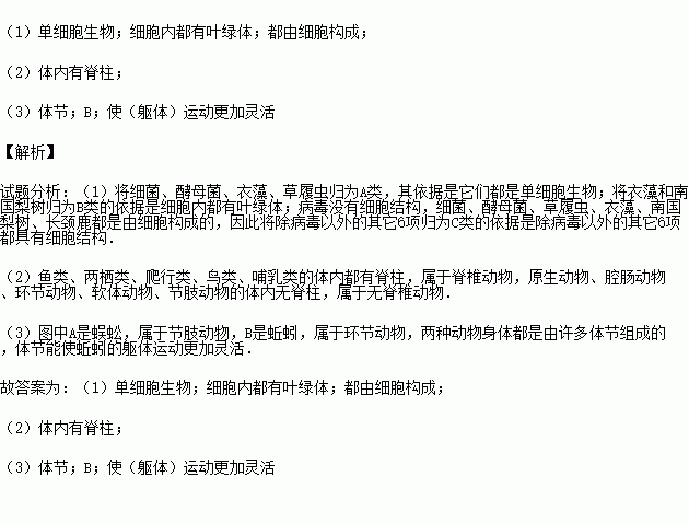 £¨1£©Í¼Öн«Ï¸¾ú¡¢½Íĸ¾ú¡¢ÒÂÔå¡¢²ÝÂijæ¹éΪAÀ࣬ÆäÒÀ¾ÝÊÇËüÃǶ¼ÊÇ £»½«ÒÂÔåºÍÄϹúÀæÊ÷¹éΪBÀàµÄÒÀ¾ÝÊÇ £»½«³ýÁ˲¡¶¾ÒÔÍâµÄÆäËû6Ïî¹éΪCÀàµÄÒÀ¾ÝÊÇ £®