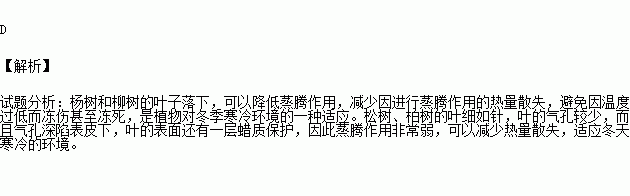B.松柏比杨柳更适应寒冷的环境