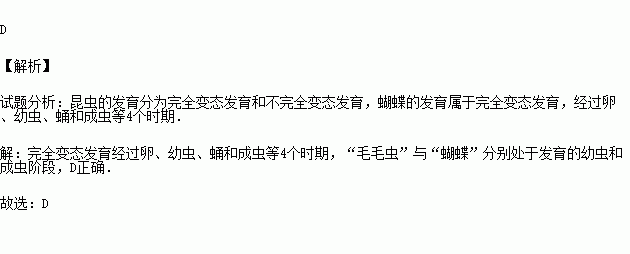 美丽的蝴蝶是由“毛毛虫”变成的,那么“毛毛虫”与“蝴蝶”分别处于发育的那个阶段( )