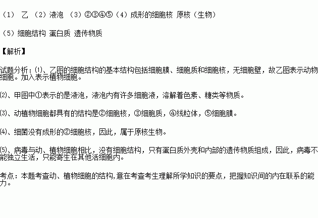 (5)病毒与动、植物细胞相比没有 ,只有 外壳和内部的 组成。