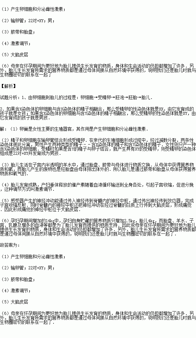 £¨4£©´óÔ¼40ÖÜ×óÓÒ£¬Ì¥¶ù¾Í·¢Óý³ÉÊ죮Ôи¾´¹Ìå·ÖÃڵĴ߲úËØËæ×ÅѪҺѻ·ÊäË͵½È«Éí¸÷´¦£¬ÒýÆð×Ó¹¬ÊÕËõ£¬´Ù½ø·ÖÃ䣬ÕâÖÖÌØÊâµÄµ÷½Ú·½Ê½³ÆÎª £®