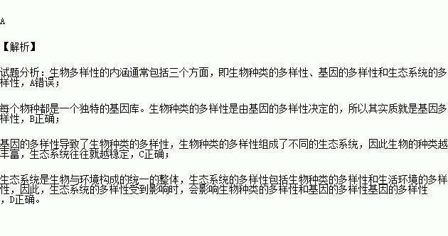 下列有关生物多样性的叙述中,不正确的是 ( )