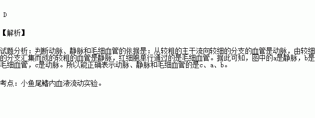 如图是某同学用显微镜观察小鱼尾鳍内血液流动时所观察到的情况,下列各项中,能正确表示动脉、静脉和毛细血管的是