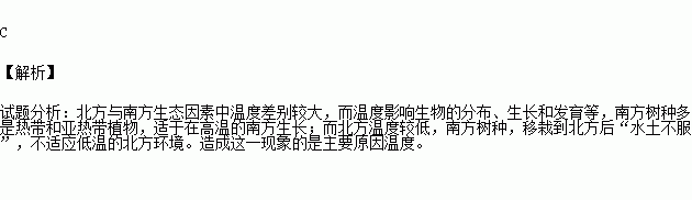 自然界里非生物因素对生物的生存和发展产生重要影响。请你从生物学角度分析,一些南方树种在北方成活率低主要是受以下哪种因素的影响( )