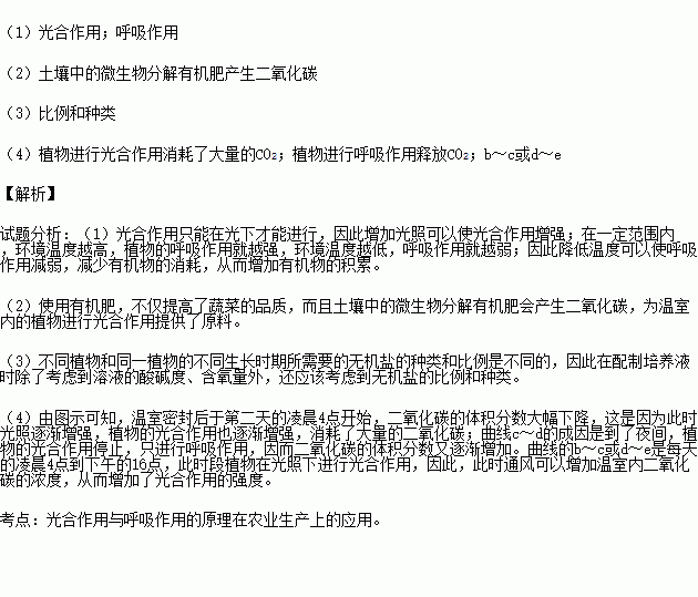 (2)菜农常常对温室内的土栽蔬菜施用有机肥,不但培育了绿色蔬菜,而且温室内的二氧化碳浓度也大大增加。二氧化碳浓度增加的主要原因是 。