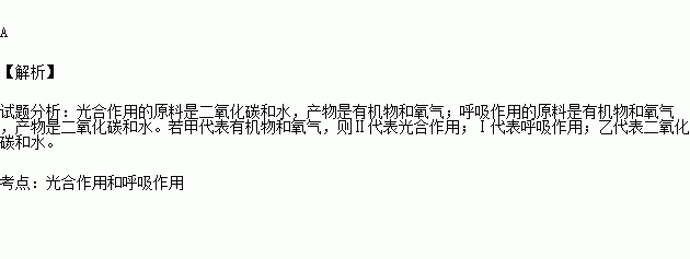下图表示光合作用和呼吸作用以及它们之间的物质转化过程,若甲代表有机物和氧气,则Ⅰ、Ⅱ、乙分别代表