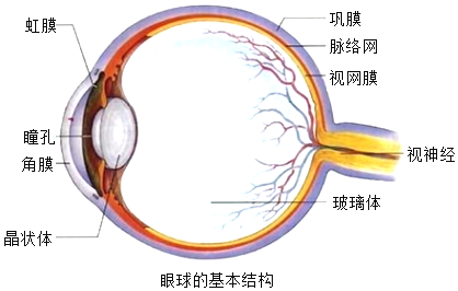 (3)观图可知:①是虹膜,②是晶状体,③是瞳孔,④是角膜,⑤是玻璃体,⑥巩膜,⑦是脉络膜,⑧是视网膜,⑨视神经。